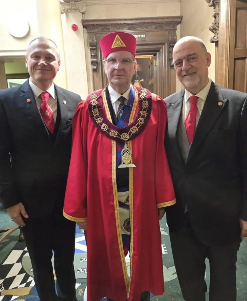 Επίσκεψη του Α΄Μεγάλου Άρχοντος του Υπάτου Μεγάλου Περιστυλίου των Τεκτόνων της Βασιλικής Αψίδος της Ελλάδος, Εξχτ. Εταίρου Ιωάννη Μπενετάτου, καθώς και του Μεγάλου Προβλεπτή του Επαρχιακού Μεγάλου Περιστυλίου Αττικής και Νήσων Αρχιπελάγους Αιγαίου, Εξχτ. Εταίρου Σπυρίδωνος Δούκα, από την τελετή επανεγκατάστασης του Α΄Μεγάλου Άρχοντος (First Grand Principal) του Μεγάλου Περιστυλίου της Σκωτίας (Supreme Grand Royal Arch Chapter of Scotland), Εξχτ. Εταίρου William Ramsay McGhee, καθώς και του Αναπληρωτή αυτού (Depute First Grand Principal), Εξχτ. Εταίρου John N. Steel, η οποία πραγματοποιήθηκε την Παρασκευή 20 Μαρτίου 2026 στη Σκωτία.