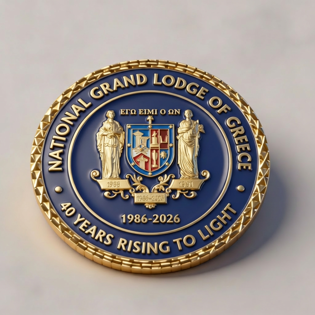 Con motivo del 40 aniversario de la fundación de la Gran Logia Nacional de Grecia, tomé la iniciativa de crear un obsequio conmemorativo que estará disponible para todos a partir del 20 de diciembre de 2025, día de la Gran Asamblea de la Gran Logia Nacional de Grecia.
